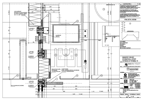 F.I.A. TERMINAL 2 Leitdetail: V-Schnitt Übergang P/R Konstruktion zum Dach