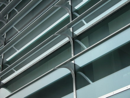 Mercedes-Benz Center elevation: fixed sunprotection lamellae mounted in front of fixed glazing