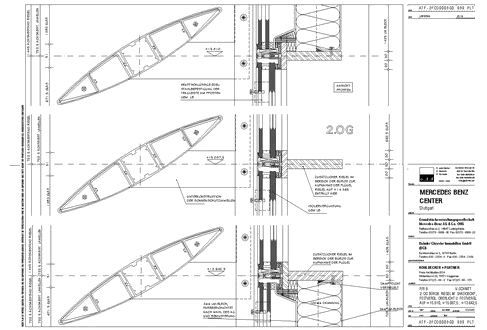 Mercedes-Benz Center guiding detail drawing: V-Section: transom construction with shadowbox panel, fanlight and fixed glazing