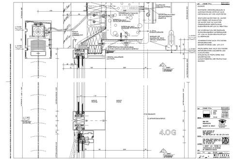 MOM Park reference Leitdetail: V-section lintel connection to natural stone with sunprotection