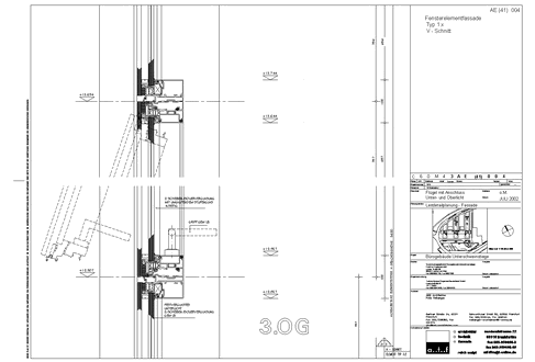 Main Airport Center reference Leitdetail: V-section window-sash and connection to upper and lower fanlights